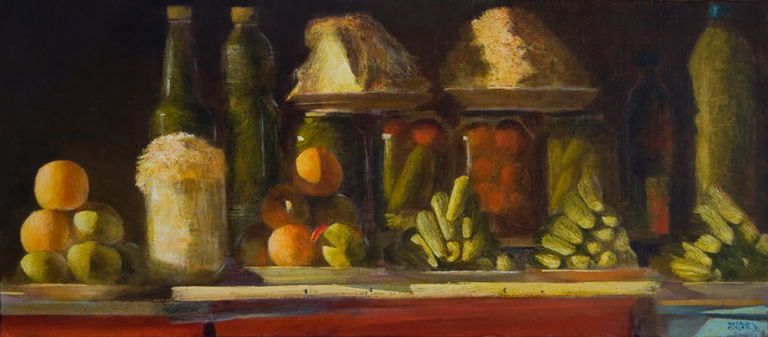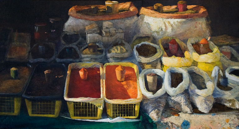 Still scape: This series depict a combination between still lifes and landscapes inspired by Central Asian memories and motives.